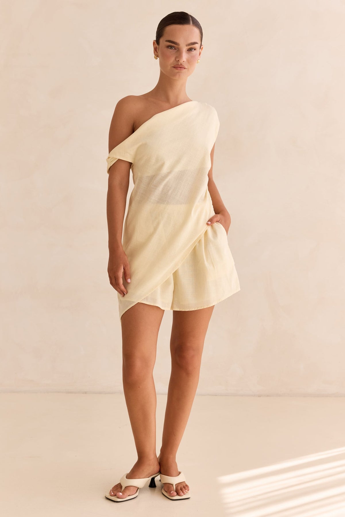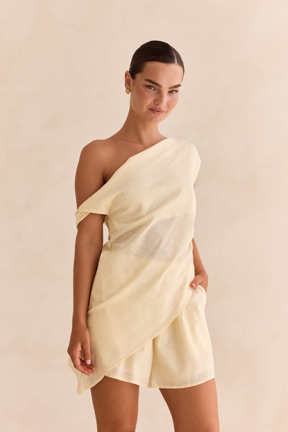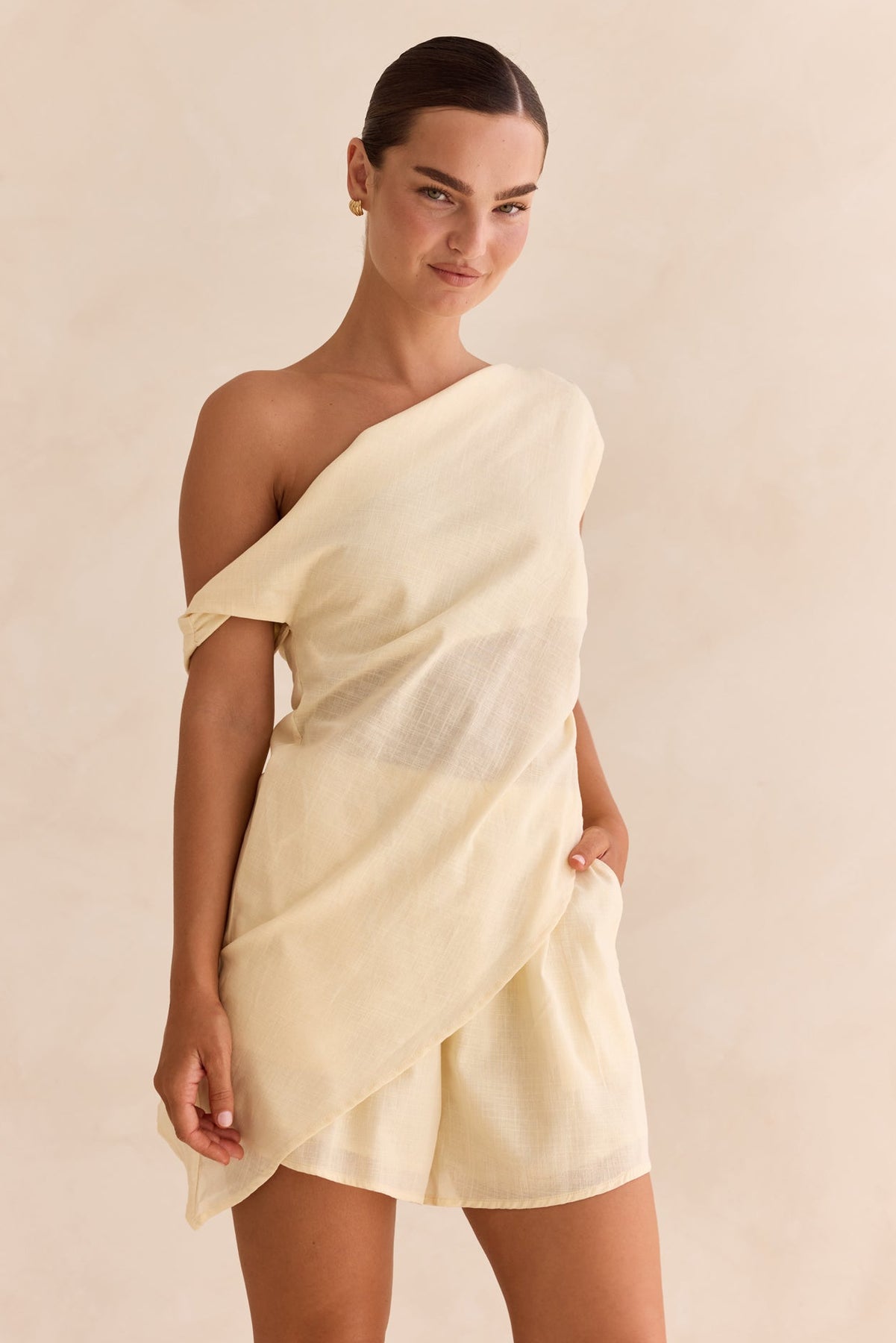 • One-shoulder top with an asymmetrical design