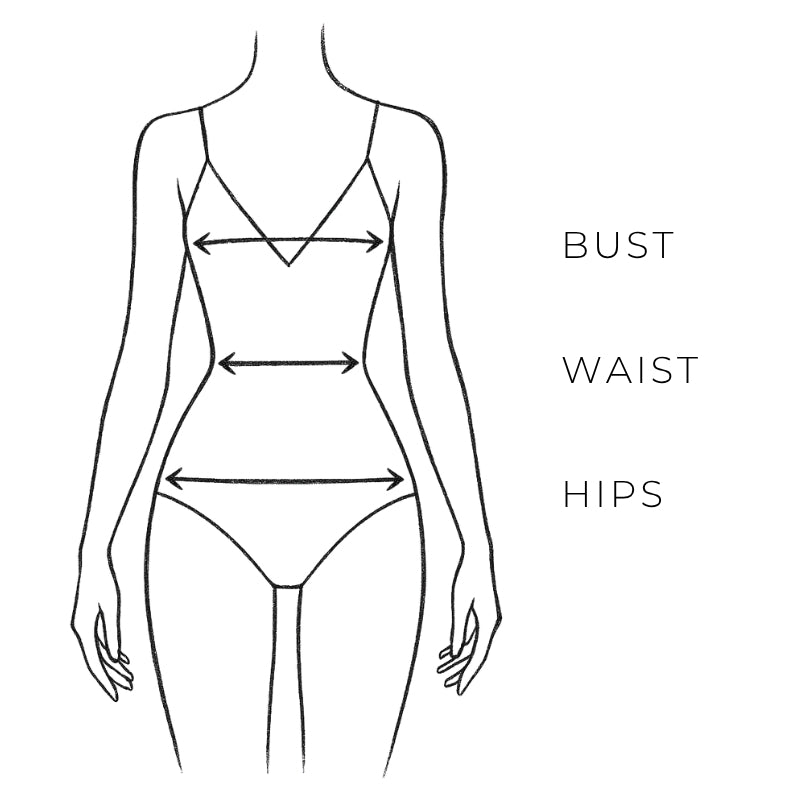 Bust: Measure under your arms at the fullest part of your bust, with arms relaxed by your sides. The tape should be even and snug, but not tight.